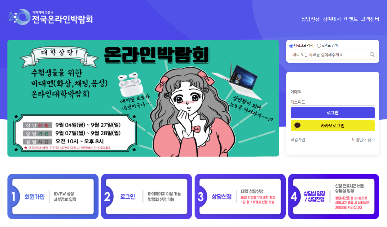 아래 사이트를 통해 원하시는 날짜와 시간으로 상담을 신청하시기 바랍니다.